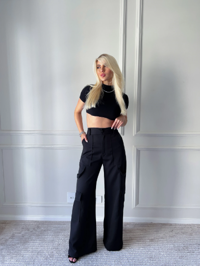 Eleve seus looks com a Calça Cargo Pantalona de Alfaiataria com Bolsões Laterais , perfeito para quem busca elegância, conforto e estilo moderno em uma única peça.