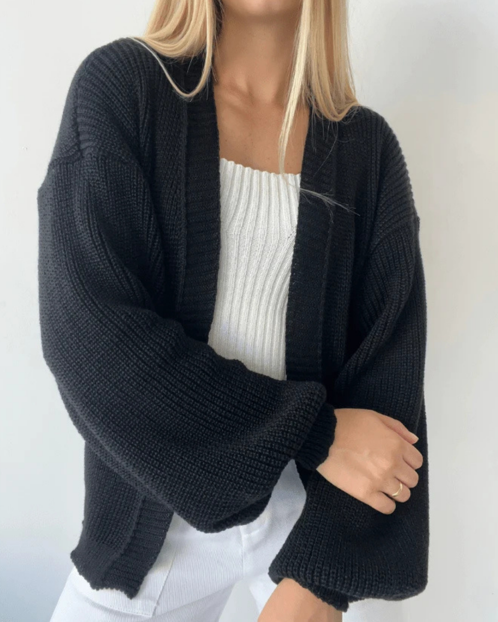 Casaco Tricot Básico com Manga Bufante | Elegância e Conforto em Uma Só Peça