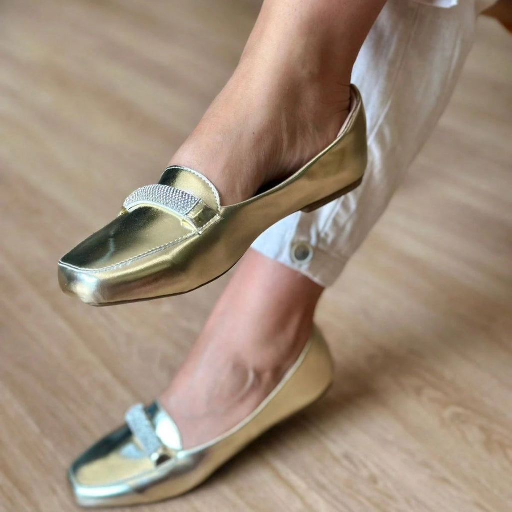 Sapatilha Feminina Mocassim Bico Quadrado com Strass – Sofisticação e Conforto em Cada Passo